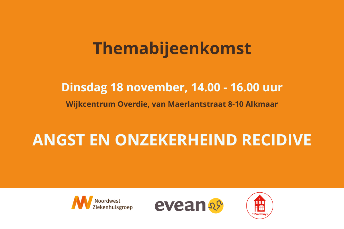 Wijkcentrum Overdie van Maerlantstaat 8-10, Alkmaar, NederlandNa een lang behandeltraject is de kanker uit het lichaam. Dan kun je die ellendige ziekte eindelijk achter je laten... toch? Helaas is dit voor veel ex-kankerpatiënten niet het geval. […]