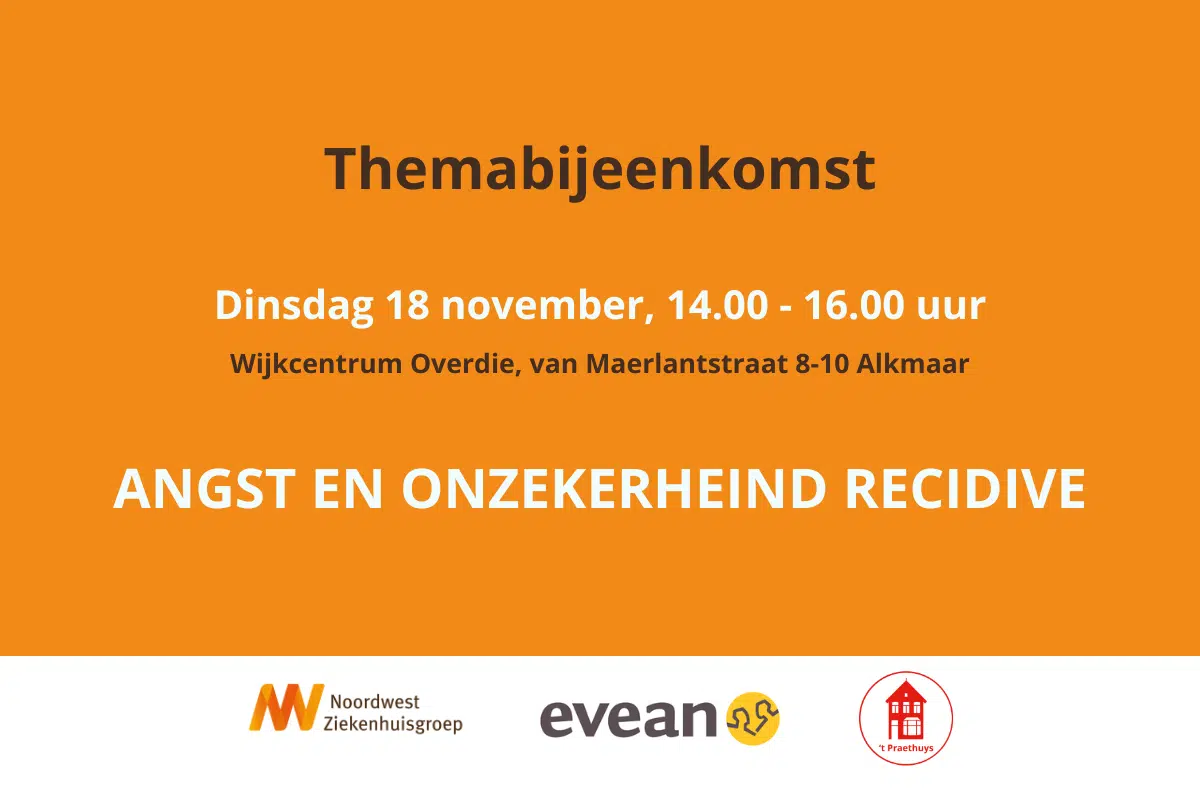 Wijkcentrum Overdie van Maerlantstaat 8-10, Alkmaar, NederlandNa een lang behandeltraject is de kanker uit het lichaam. Dan kun je die ellendige ziekte eindelijk achter je laten... toch? Helaas is dit voor veel ex-kankerpatiënten niet het geval. […]